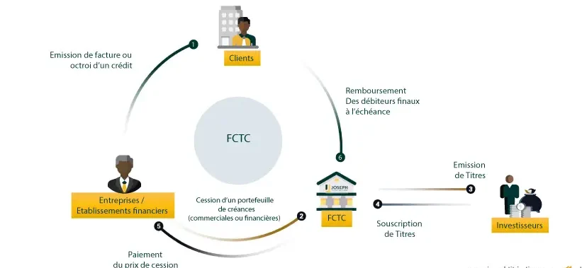 Pour financer l’acquisition de créances, des titres sont émis sur le marché financier à travers un véhicule, le Fonds Commun de Titrisation de Créances. Ces titres, souscrits par des investisseurs institutionnels, bénéficieront d’un rendement gagé sur les flux financiers de la créance, avec un rapport risque-rendement optimisé. Le cédant dispose ainsi d’un financement de marché, qui présente pour avantage de ne pas peser sur le niveau d’endettement